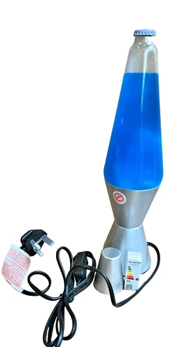 Lava Lamp 2103, White Wax, Blue Liquid, Silver Base and Cap, Original 14.5 inch
