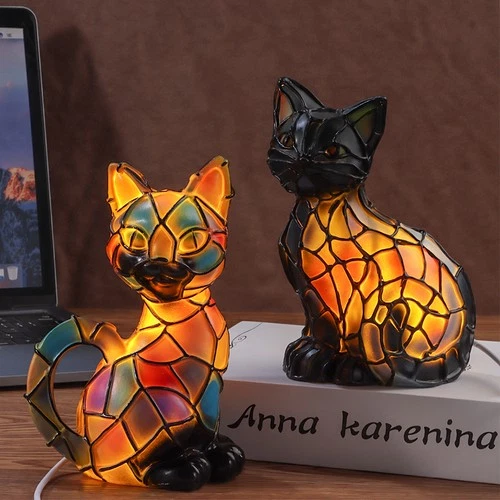 Retro Tabletop Cats Stained Resin Table Light New Cat Lamp Home Bedroom