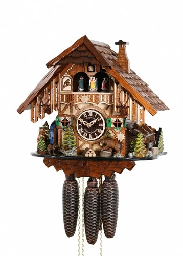 Cuckoo Clock Black Forest house with moving bear and turning.. EN 48713/8 MT NEW