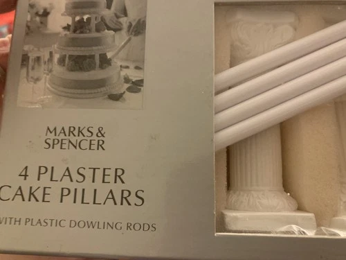 VINTAGE ST MICHAEL/MARKS & SPENCER PLASTER CAKE PILLARS & PLASTIC DOWELING RODS