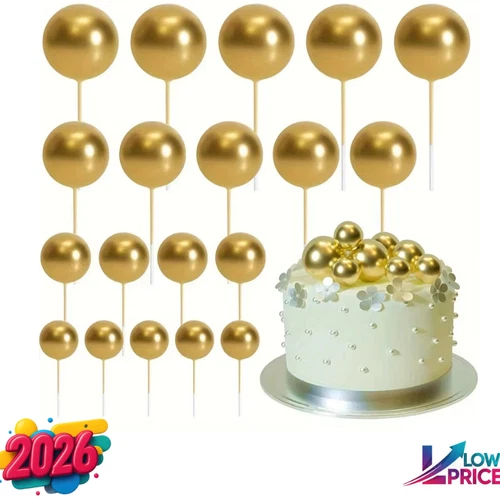 20Pcs Cake Topper Gold Silver Ball Happy Birthday Cake Topper Decoration DIY Cup