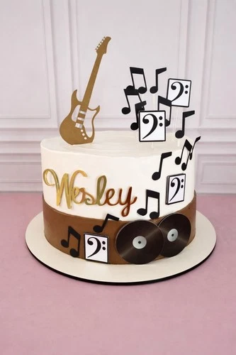 Music Theme Birthday Cake Topper – Guitar & Musical Notes Cake Decoration