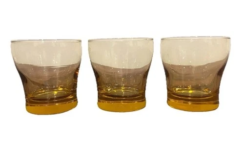 Libbey Lowball Whiskey Glass Forever Amber Yellow Gold Ombre 3" Set Of 3 Vintage