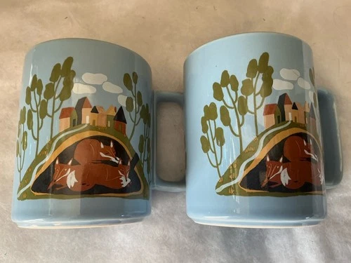 DANICA STUDIO CERAMIC MUGS SET OF 2 Foxes And Badgers In Den