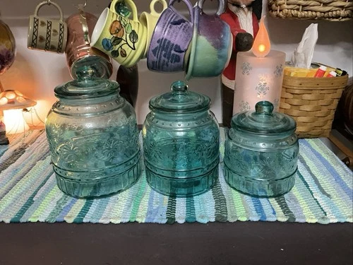 The Pioneer Woman Cassie Teal Embossed Glass Canister 3-Piece Set