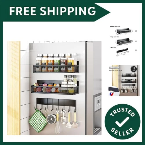 Magnetic Spice Rack for Refrigerator, 3 Pack Magnetic Shelf, Moveable Magnet ...