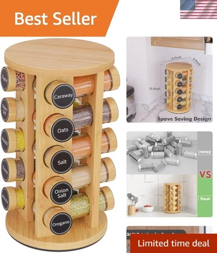 Spice Rack Set with 20 Jars Carousel Organizer Countertop Kitchen