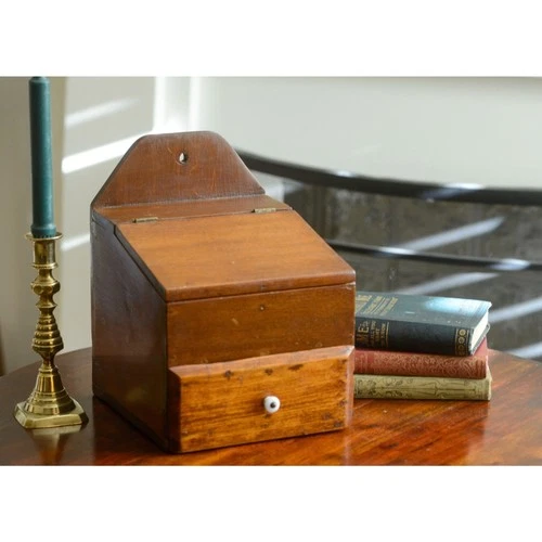 Vintage Primitive Wooden Large Hanging Fireside Candle Box Salt Box