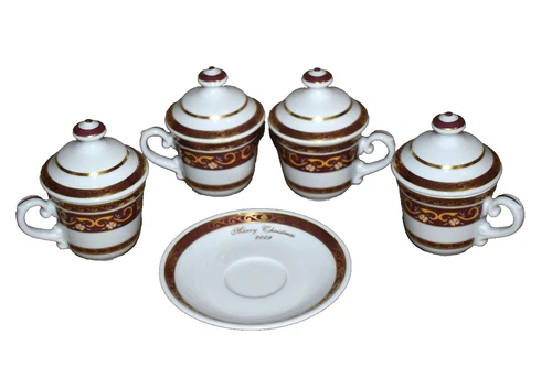Schönwald Germany 6208 Porcelain Coffee Espresso 4 Cups w/Lids & 1 Saucer 6209
