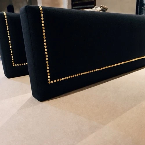 Black Velour Plain Velvet Valance Padded Window Pelmet With Gold Studding