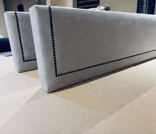 Grey Plush Valance Padded Window Pelmet With Black Studding