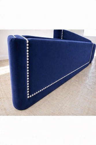 Blue Velour Plain Velvet Valance Padded Window Pelmet With Studding