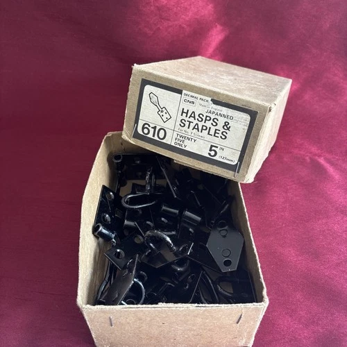 Vintage 1970s NOS 5”Hasps & Staples Box of 10 Black Japanned Made in England