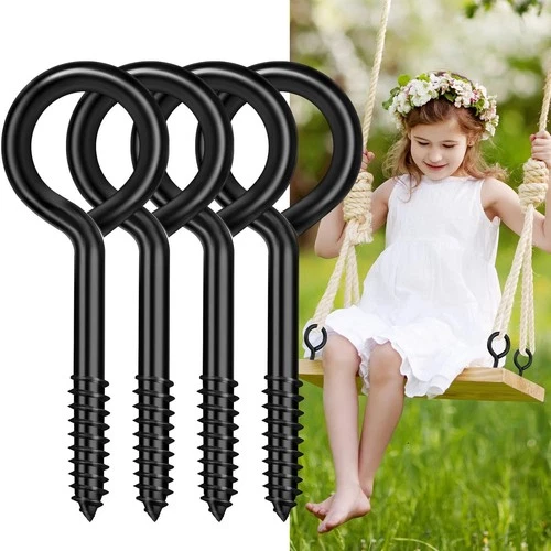4PCS Eye Hooks Screw, 5 Inch Black Eye Hooks Screw Self Tapping Eye, Heavy Du...