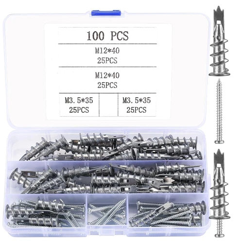 100 Pcs Plasterboard Fixings, Wall Plugs with Screws, Heavy Duty Self Drilling R
