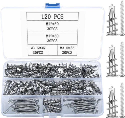 120 Pcs Plasterboard Fixings, Incl 60 Metal Self Drilling Plasterboard Wall Plug