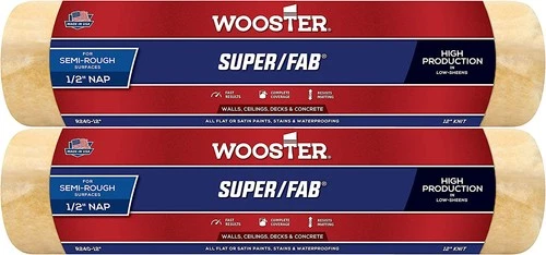 Wooster Genuine 12" Super/Fab 1/2" Nap Roller Cover 2-Pack, R240-12-2PK
