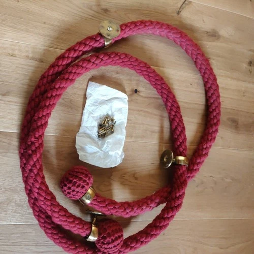 Deep red bannister rope with heavy brass fittings and screws. 285cms long.