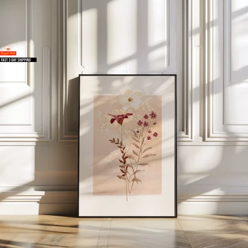 Frameless Pink Watercolor Flower Prints, Japanese Art, Wildflower Flower Art, Fl