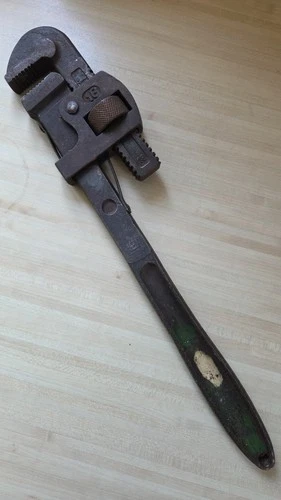 VINTAGE STILSONS ADJUSTABLE PIPE WRENCH 14” SCANDIA PLUMBER ENGINEERS OLD TOOLS