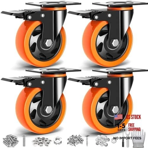 Casters Wheels, Heavy Duty Casters Set of 4 Load 2200lbs with 4 inch Orange