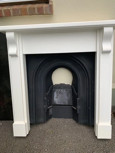 Fire surround and steel insert suitable for gas or solid fuel ; in good order