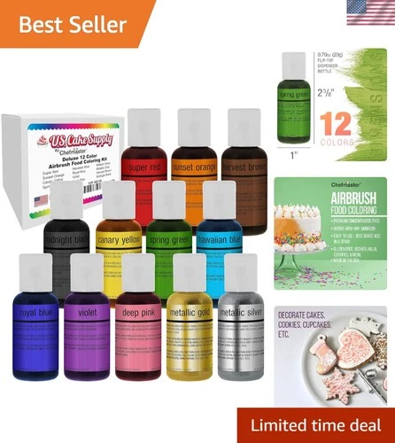 Kosher Airbrush Cake Color Set - 12 Rich Colors in Easy-Use Bottles 0.64 Fl. Oz.