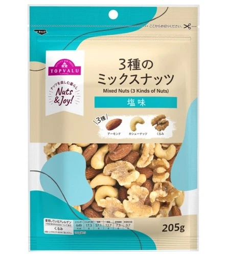 Topvalu 3 Kinds of Mixed Nuts, Salted, 205g Japanese Bean snacks