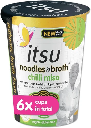 Itsu chilli miso instant noodles & broth pot 65g gluten free vegan pack of 6
