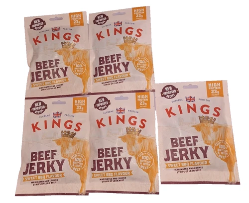 Kings Beef Jerky - Sweet BBQ Flavour - High Protein Meat Snack - 5 x 60g