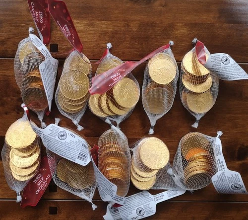 10 x Tesco Chocolate Coins (6 x Milk Choc, 4 x White Choc) BBE:06/26 (10 x 62g)