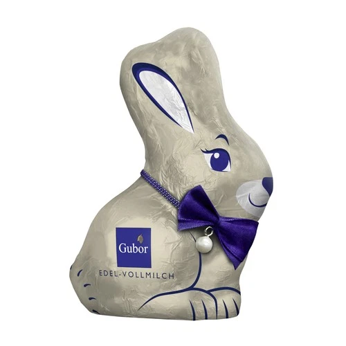 Riegelein Gubor Easter Bunny With Pearl Bow Hollow Figure, Fine Chocolate 100g