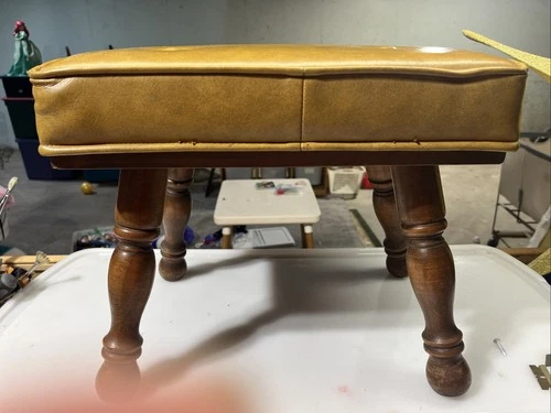 VTG OTTOMAN FOOTREST STOOL VINYL MUSTARD COLOR