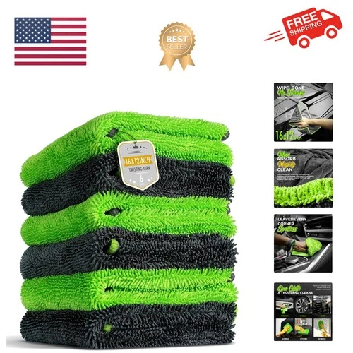 6-Pack Microfiber Towels for Cars 16"×12" Ultra Absorbent and Scratch-Free Ca...