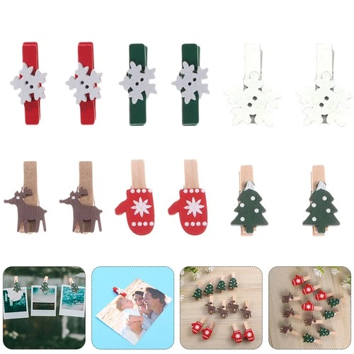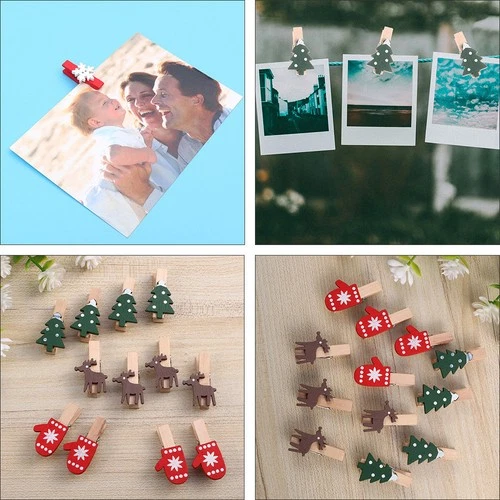 30pcs Creative Photo Pegs Christmas Wood Clips Clothespins Photo Clips for