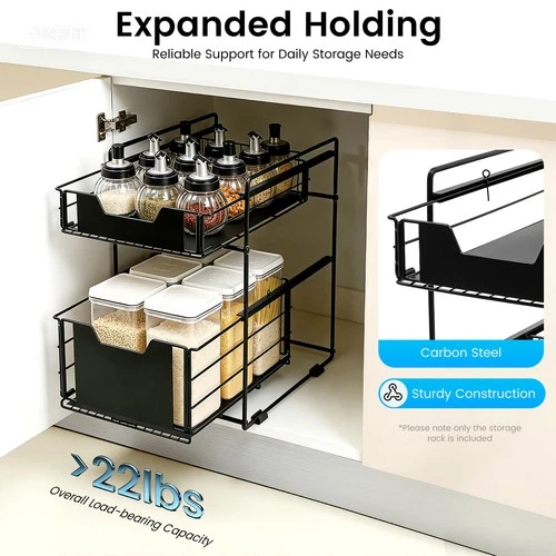 Under The Sink Organizer Large Black Sliding Rack 2 Layer For Cleaning Supplies