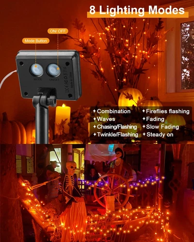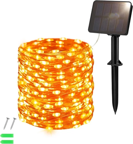 Orange Solar Fairy Lights, 12M/40Ft 120 LED Orange Halloween Lights Copper Wi...