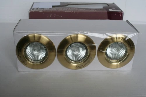 B & Q Marec 3 pack Brushed Brass Mains GU10 50W Halogen Downlights NEW)