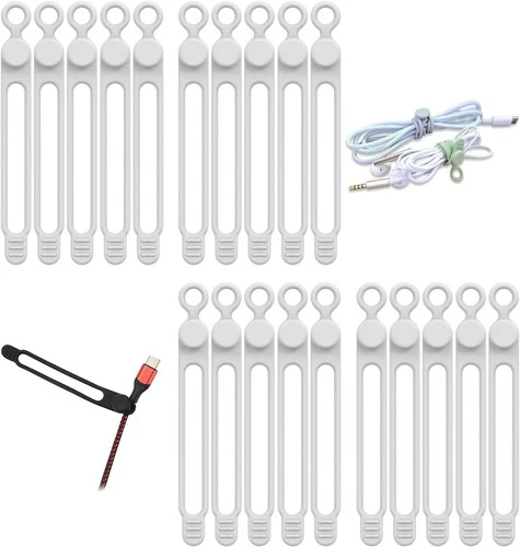 ALINK 20Pcs Silicone Cable Straps Cord Organizer for Bundling Earphone, White