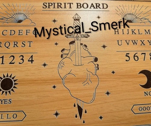 Haunted Active Spirit Ouija Board Neutral Heart Sword Wood Tone Found Abandoned1