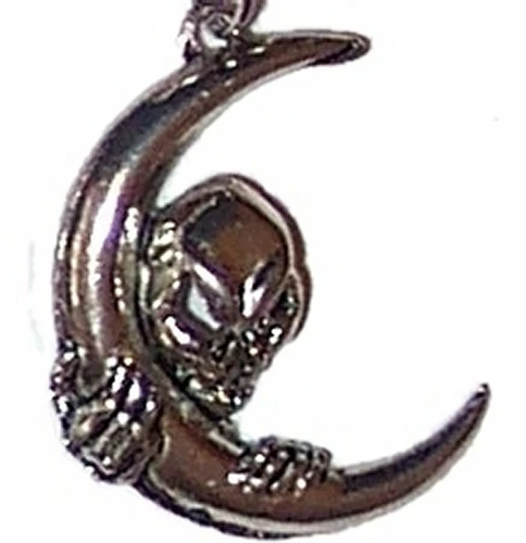 Gothic SKULL on CRESCENT MOON Pendant by Cosmic Pewter of England