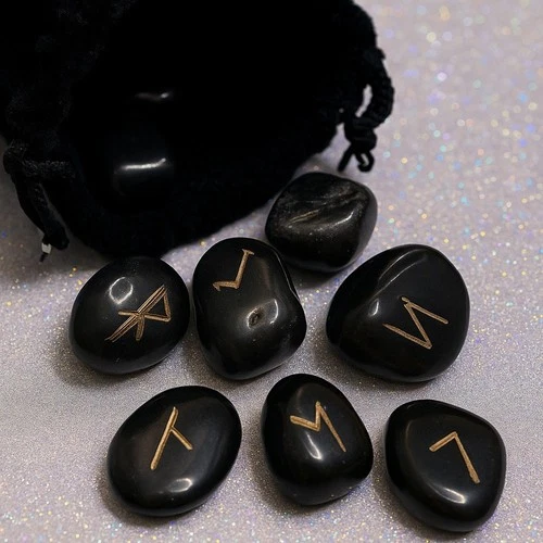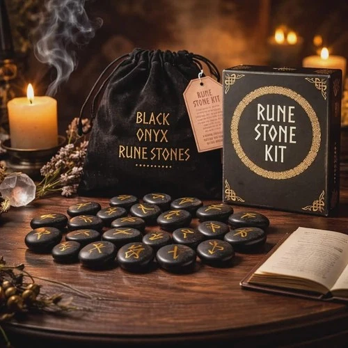 Black Onyx Rune Stones Set | Viking Divination Kit | Witchcraft Pagan Gift