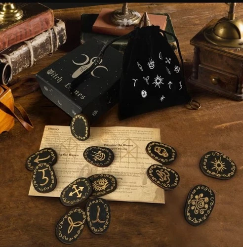 Wooden Runes Set Witch Stuff 25Pcs for Beginners with Guide Book Witch Gift