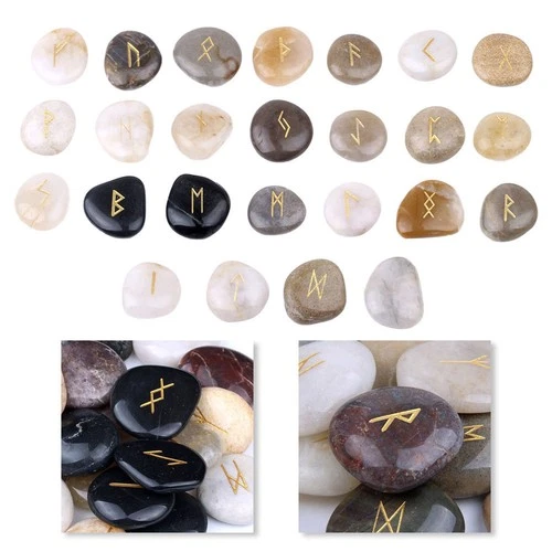 25 Pcs Natural Rune Stones Sets Engraved Pebbles for Telling Divination