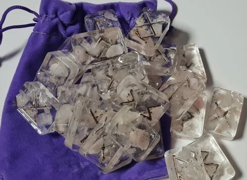 Rose Quartz Elder Futhrak Runes set in resin, handmade, new