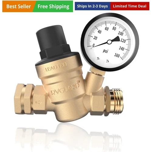 RV Water Pressure Regulator Valve, Lead-Free Brass Adjustable Water Pressure ...