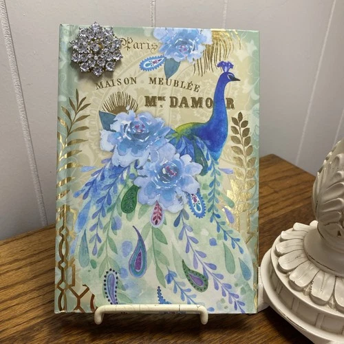 Pooch & Sweetheart PEACOCK Brooch Lined Journal ~NEW~Blue Green
