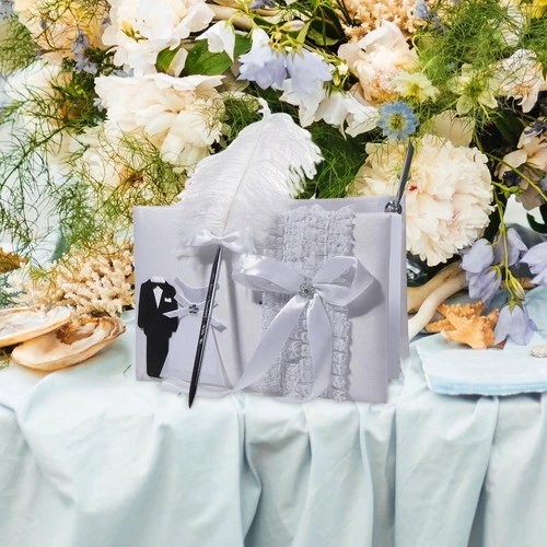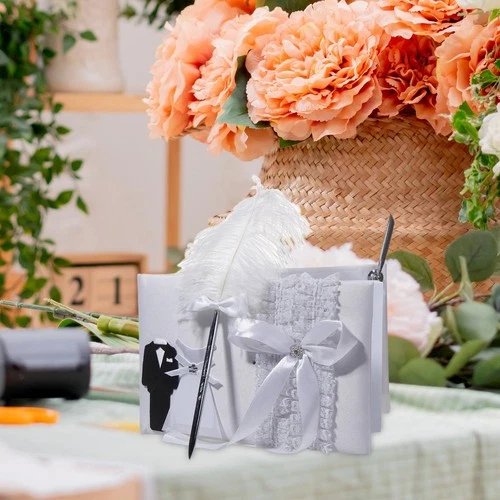 Satin Guest Book With Pen And Holder For Wedding And Other Important Occasions