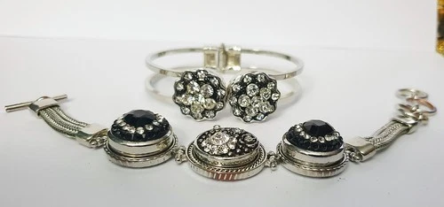 Set of Ginger Snap Interchangeable Button Charm Bracelets Link/Clamper Cuff