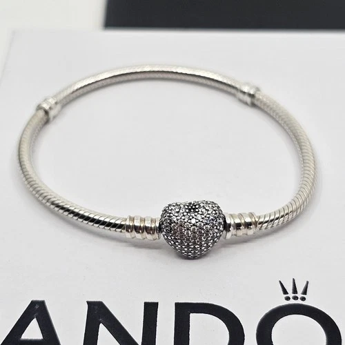 Pandora Moments Cz Pave Heart Clasp 17cm Silver Charm Bracelet 590727 FreePost